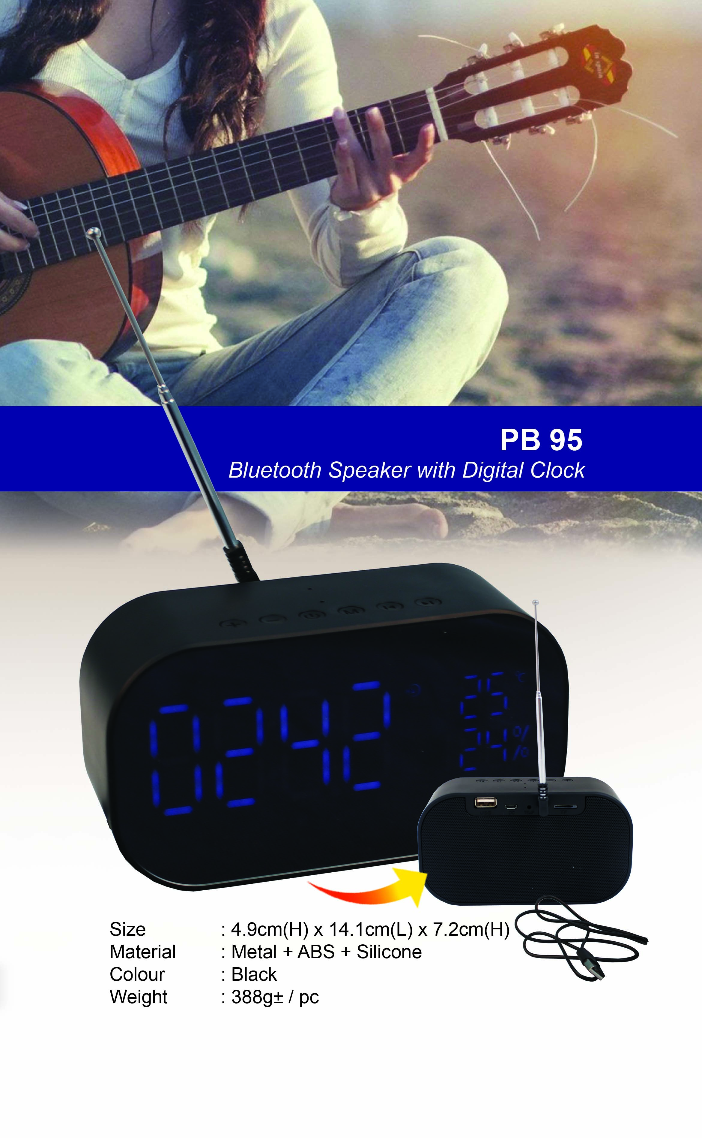 PB 95 Bluetooth Speaker with Digital Clock Home » PRODUCTS » PB 95 Bluetooth Speaker with Digital Clock PB 95 Bluetooth Speaker with Digital Clock PB 95 Bluetooth Speaker with Digital Clock IT Products << return to products
